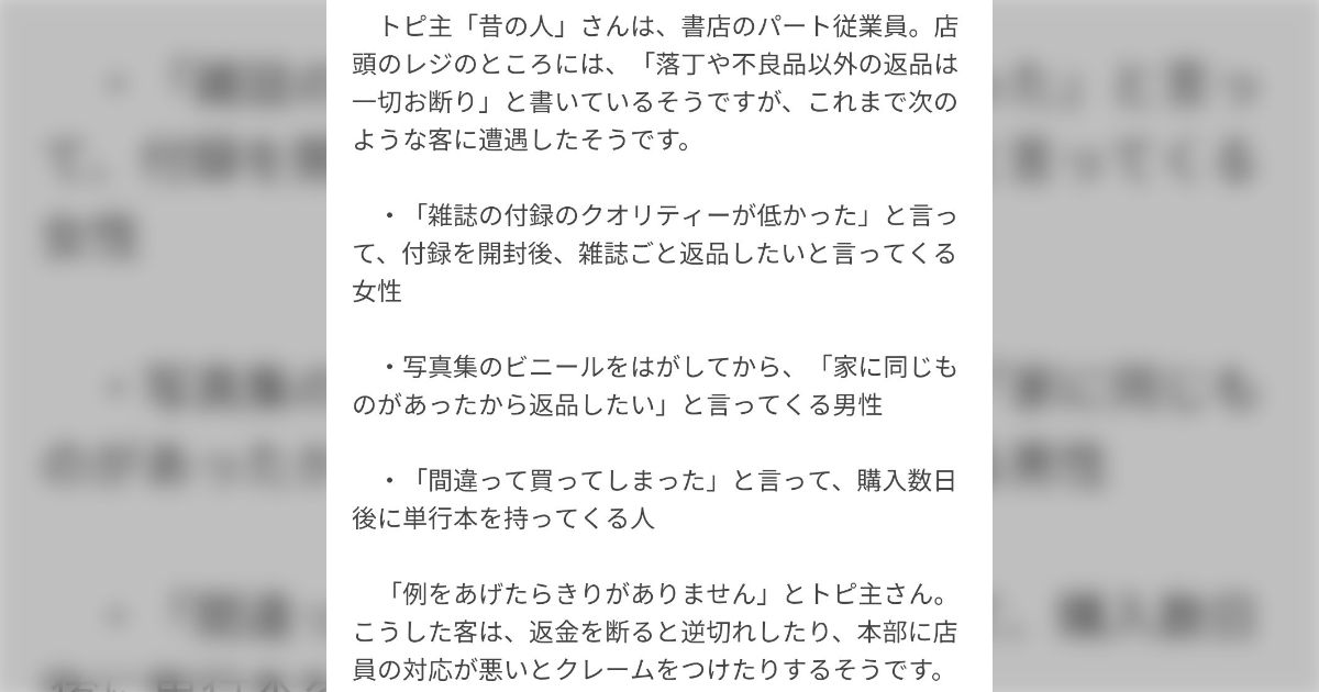 読売新聞が運営する女性向け掲示板サイト「発言小町+(プラス)」の記事「書店に「本や雑誌を返品したい」…常識疑う声も」に関連するツイートです。