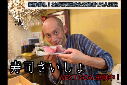 目標金額300万円のところ850万2千円でフィニッシュした寿司さいしょさんのクラウドファンディングのおめでとう+お疲れさま会にさんかしました。
