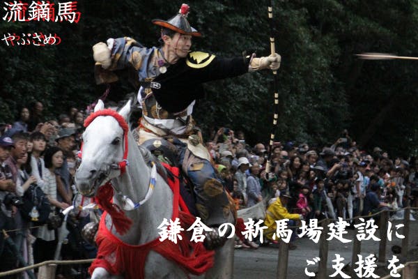 鎌倉時代からの伝統、流鏑馬(やぶさめ)馬場の建設・維持にご支援を