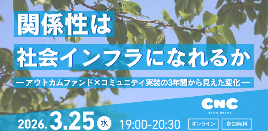 【2026年3月25日(水)】関係性は社会インフラになれるか|アウトカムファンド×コミュニティ実装 3年間の社会実験から見えた変化