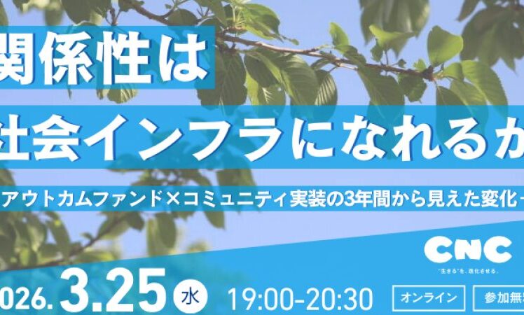 講演・イベント【2026年3月25日(水)】関係性は社会インフラになれるか|アウトカムファンド×コミュニティ実装 3年間の社会実験から見えた変化